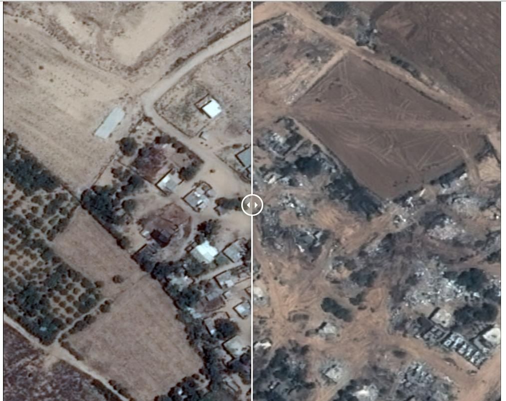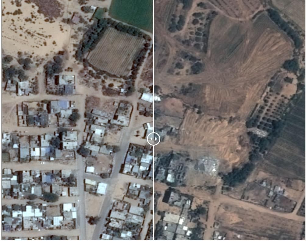 Existen fotos aéreas del 6 y del 25 de julio que muestran los resultados de los ataques del ejército israelí que se produjeron durante 15 días en ese mes.