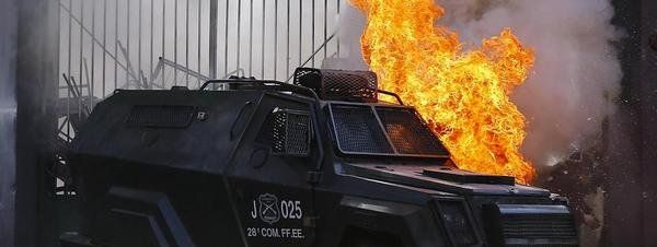 En los incidentes, los manifestantes incendiaron también un automóvil y trataron de atacar una comisaría de Carabineros.