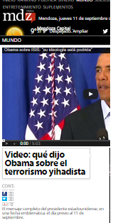 El nuevo enemigo global a vencer, tan brutal que une en su contra a países y líderes adversarios, está obteniendo un triunfo propagandístico y, según lo anunciado por el presidente de EEUU (en la emblemática noche previa al 11 de septiembre), Barack Obama, será afrontada por un nuevo tipo de guerra para el cual se desplegará al máximo una nueva tecnología: los drones. Comenzará en Irak aunque la extensión de su territorio incluye a Siria, en donde EEUU y su odiado mandatario, Bashar Al Assad, comparten a los yihadistas como enemigos. O dicho de otro modo, EEUU coincide en el objetivo de los rebeldes sirios en que hay que derrocar a Al Assad, aunque con planes bastante diferentes para el futuro.