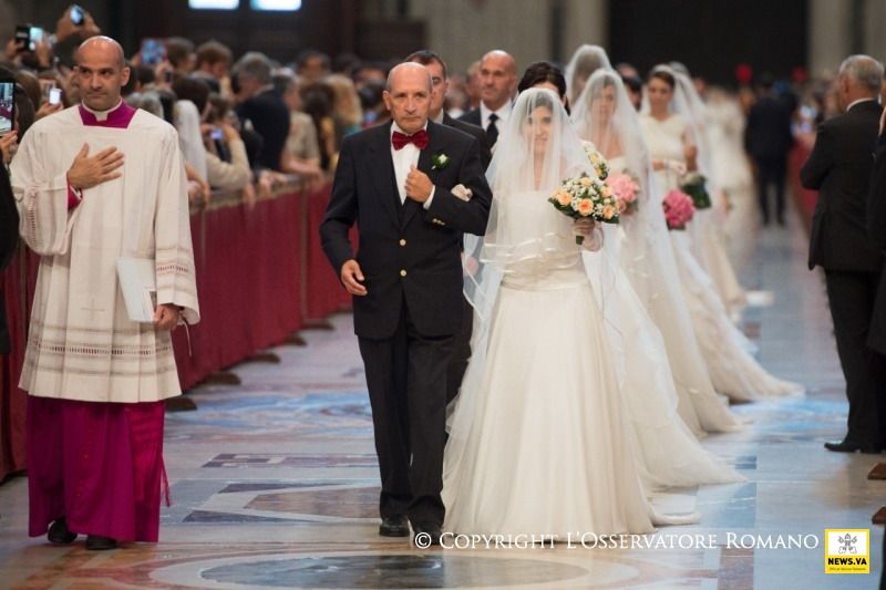 Fotos gigantes: el álbum de Francisco de los casamientos en el Vaticano