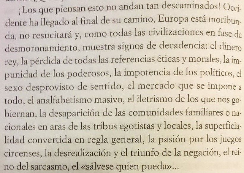Más allá de lo esperanzador domina la realidad. Y se lo pregunta el autor: ¿Quién puede tener interés en ser pacífico cuando ahora puede ser conquistador?"