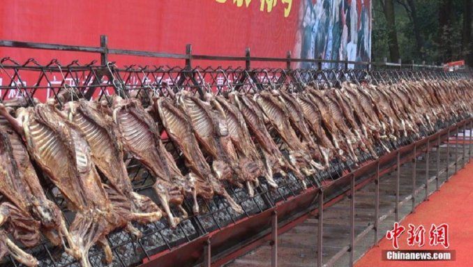 "Maestro asador" chino cocinó 216 corderos al mismo tiempo