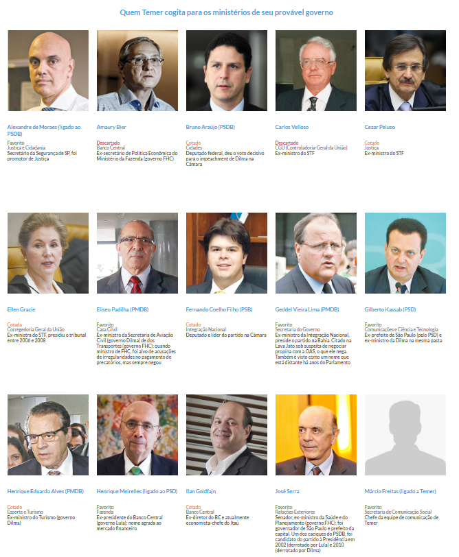 Los otros ministros de un eventual gabinete de Temer son, según Folha: