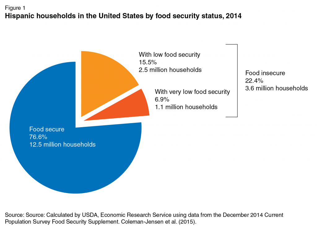 Los hogares hispanos tienen el doble de riesgo de pasar hambre o sufrir “inseguridad alimentaria” que el resto de la población, según advirtió un informe reciente del Departamento de Agricultura de EEUU (USDA). Elaborado por el Servicio de Investigación Económica de USDA, el informe señala que en 2014, el 14% de los hogares en EEUU tuvo problemas de seguridad alimentaria, y para el 5,6% el problema fue bastante serio.