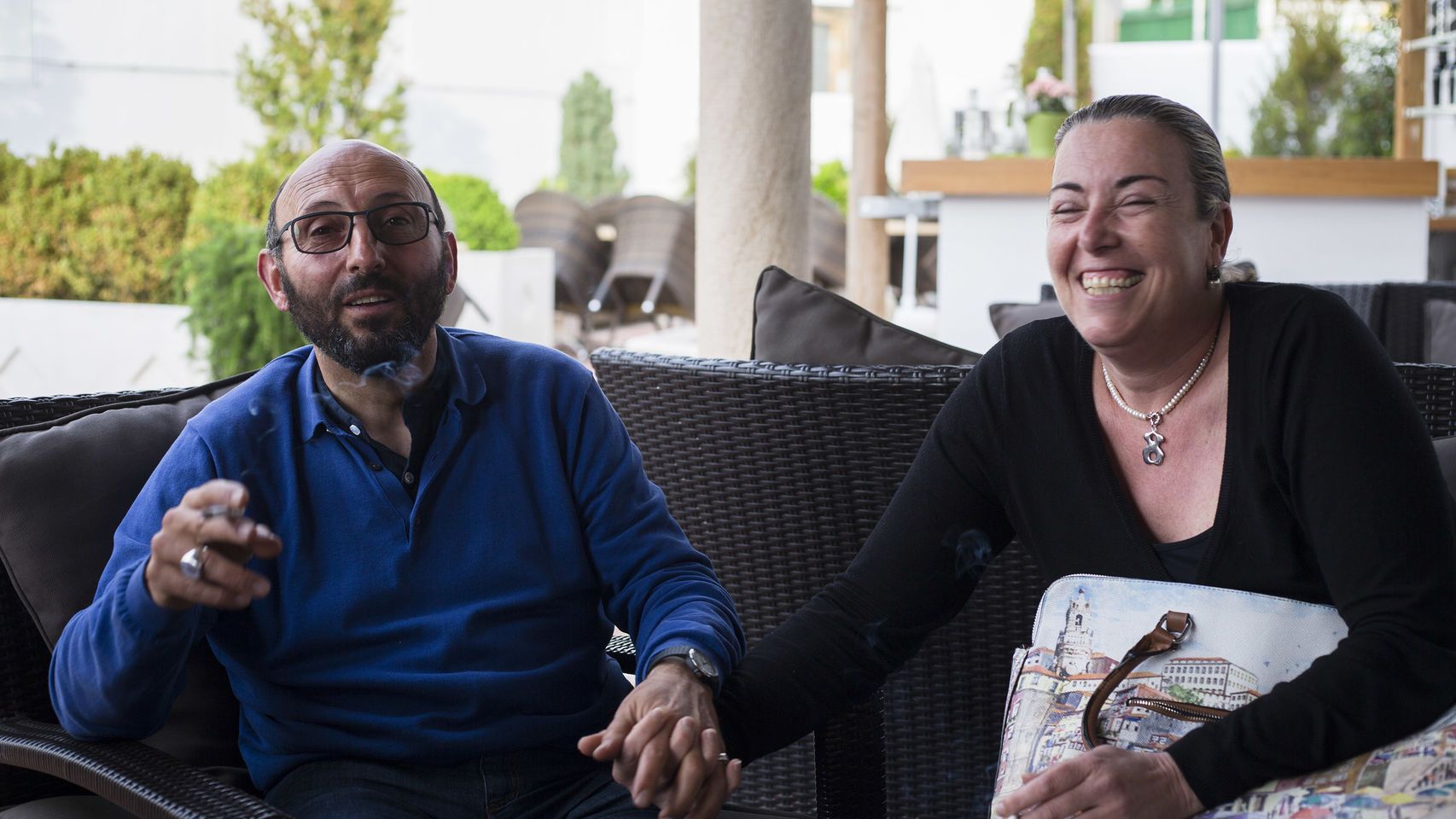 [Ginés Jesús Hernández, el Papa Gregorio XVIII, concatena cigarrillos y apura un tercio de cerveza. La entrevista, que concede en un bar de Barrio Monachil cercano a su nueva casa, dura cuatro horas. Agarra la mano de Nieves, su novia, que no para de dedicarle caricias. Él se define como una persona “sentimentalmente fría” pero llama Chati a su pareja, cuyo número de teléfono guarda en su teléfono como Mi niña]