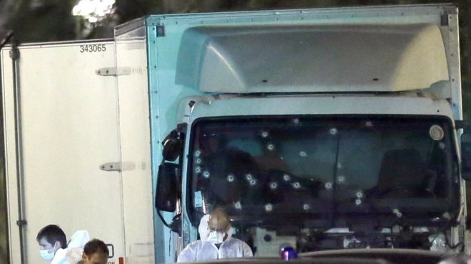 Según testigos, el conductor del camión embistió a gran velocidad a las personas que observaban los fuegos artificiales. Las autoridades lograron abatirlo cuando ya había recorrido unos dos kilómetros en medio de la multitud.