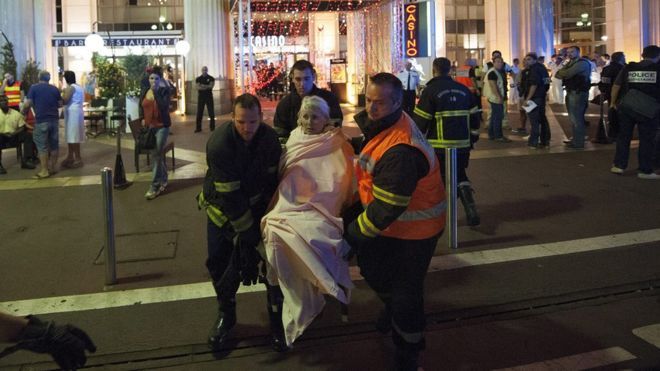Los servicios de emergencia atendieron de inmediato a las decenas de heridos por el ataque, que se produjo durante la celebración del Día de la Bastilla, la fiesta nacional de Francia.