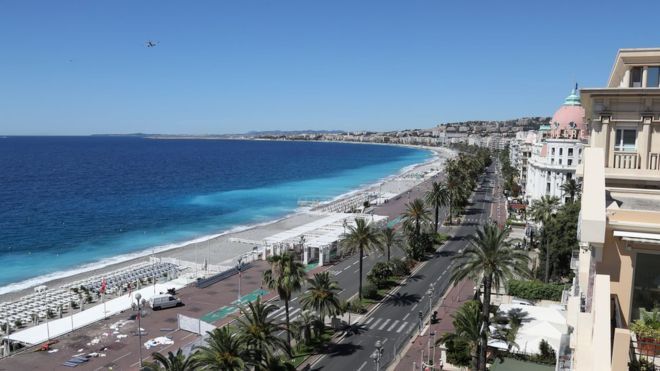 El tradicionalmente concurrido Paseo de los ingleses ahora está desierto, mientras Francia trata de procesar un nuevo ataque.