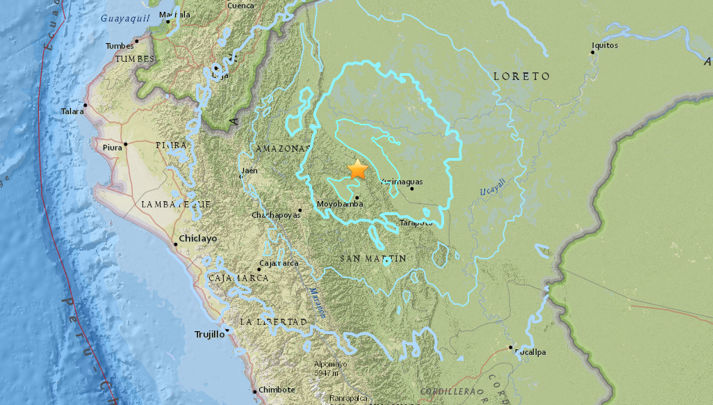 Un sismo de magnitud 6 en la escala de Richter se ha registró en el norte de Perú, a unos 50 kilómetros al norte de la ciudad de Moyobamba.