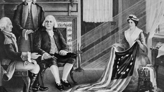 La historia salió a luz en 1870, cuando William Canby, nieto de Ross, contó a la Sociedad Histórica de Pensilvania, en Filadelfia, que su abuela hizo la bandera a pedido del primer presidente de EE.UU., George Washington, aunque no existe prueba que así lo confirme.