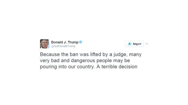 Horas después la Casa Blanca prometió luchar contra lo que llamó un decreto "indignante", e indicó que solicitaría una suspensión al mandato del juez y restauraría la "orden legal y apropiada" del presidente.