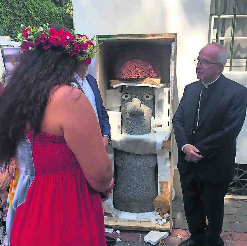 El moai que será obsequiado a Francisco llega, por supuesto, de la Isla de Pascua y fue esculpido por el artista Pau Hereveri Tepano. Este creativo mixturó dos tipos de piedra: basalto vesicular -de color plomo- y hanihani -que tiene tonos rojizos-. La escultura pesa alrededor de 350 kilos y lleva el nombre "Haumarū o te A'o", que significa Paz en el Mundo. Fue bendecida en septiembre y trasladada a Santiago a fines de 2017.