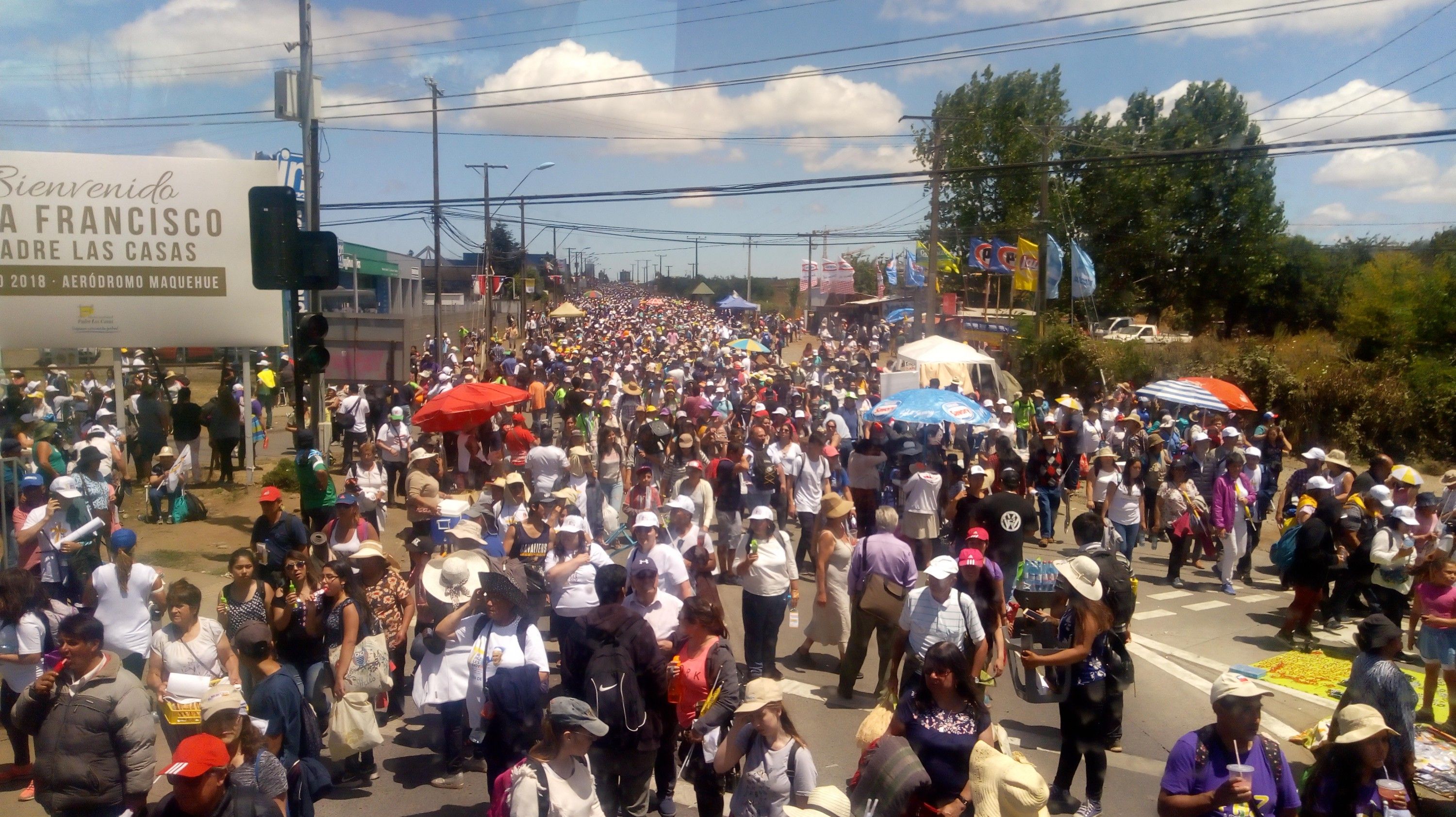 Ese día la jornada arrancó a las 2 de la mañana, cuando emprendí rumbo al aeropuerto de Santiago para tomar un vuelo en el que irían periodistas, curas y fieles para participar de la misa masiva en el aeródromo Maquehue. Había que estar a las 4 de la mañana para tomar el vuelo de Aerovías DAP, un charter que debía llegar antes de las 7 de la mañana a la capital de la Región de la Araucanía, porque como les comenté, había que llegar antes y volver después que el Papa. Jornadas muy largas.