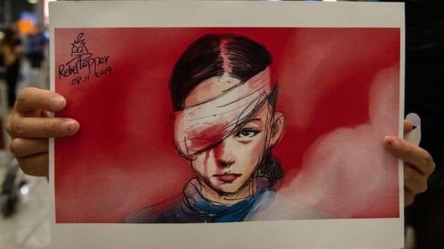 En Hong Kong, una joven manifestante recibió un disparo en el ojo el mes pasado durante manifestaciones prodemocráticas. Tras el suceso, se convirtió en un símbolo de resistencia contra las fuerzas de seguridad.