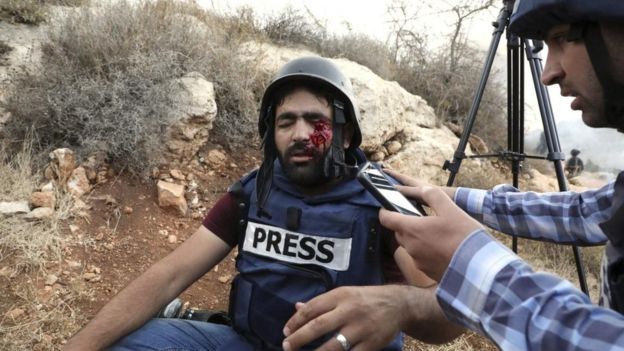 El lunes, se hizo viral una imagen que muestra al fotógrafo palestino Muath Amarneh sangrando de su ojo izquierdo después de ser alcanzado por una bala de goma disparada por las fuerzas de seguridad israelíes en Cisjordania.