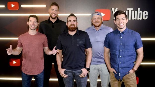 El segundo canal con más ganancias, Dude Perfect, presenta a cinco amigos de 30 años que juegan con artículos como las pistolas Nerf y practican trucos con las mismas.