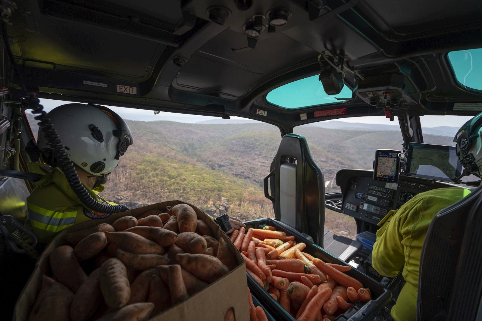 Zanahorias desde helicópteros: el operativo para ayudar animales afectados por los incendios en Australia