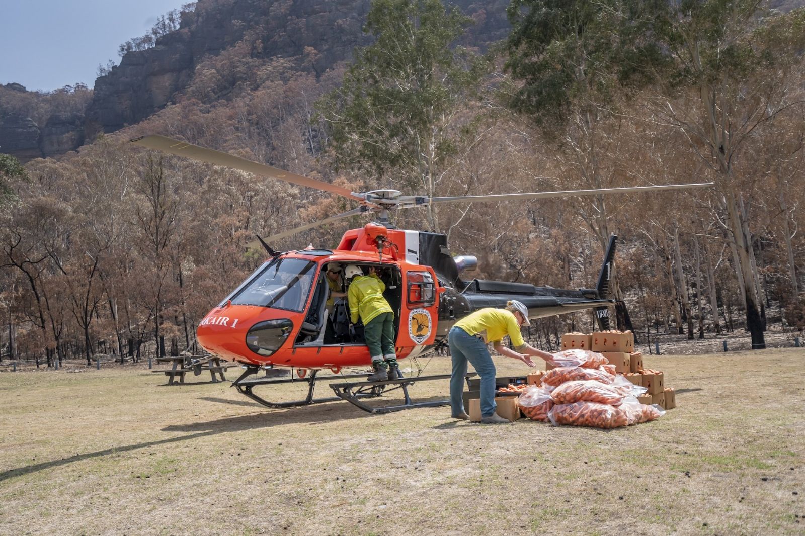 Australia está lanzando desde helicópteros miles de kilos de tubérculos para animales hambrientos como consecuencia de la destrucción de su hábitat por los incendios que están arrasando el país desde el pasado septiembre.