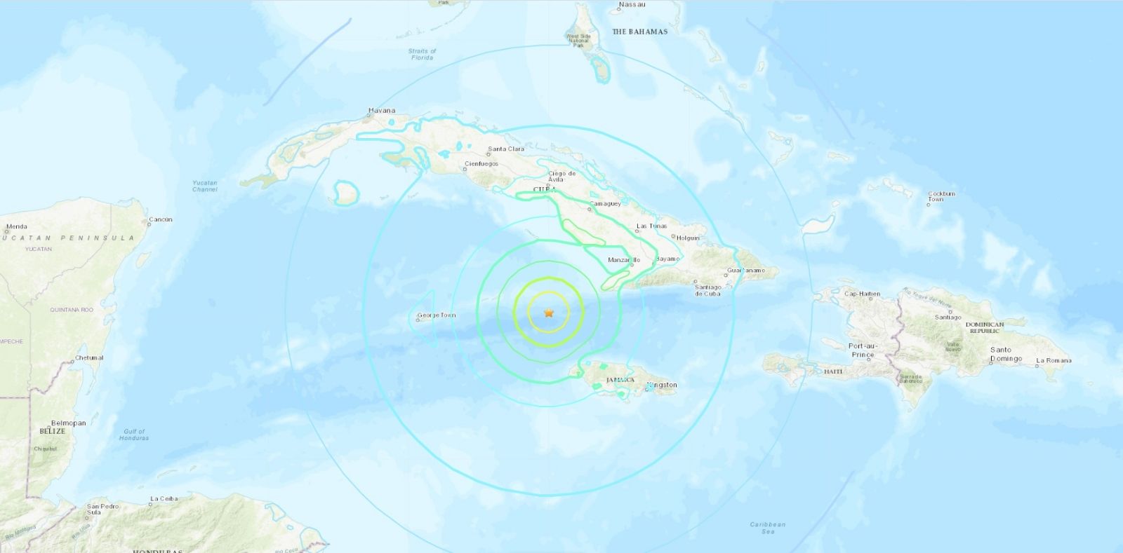 Un fuerte terremoto de magnitud 7.7 se registró este martes a 120 kilómetros del extremo noroeste de Jamaica y 80 kilómetros del sureste de Cuba a una profundidad de 10 kilómetros.