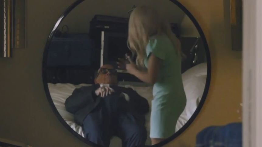 La escena en cuestión transcurre de la siguiente manera: Giuliani es entrevistado por Tutar, la “hija” de Borat; una joven de 15 años conservadora que se está iniciando en el mundo del periodismo. Lugo ambos se dirigen a una habitación de hotel, dónde le sacarán el equipo del micrófono al ex gobernador, en ese momento la chica le quita el micrófono y se lo puede ver a Giuliani introducir sus manos en sus pantalones. En ese momento Borat interrumpe diciendo “Tiene 15 años, es demasiado grande para ti”.