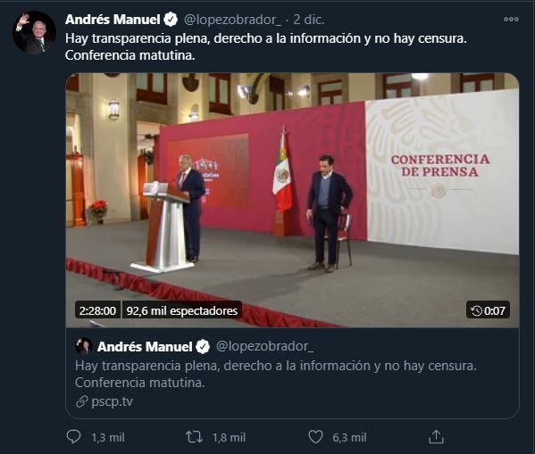 Y agregó: “Estamos conscientes de que existe oposición a nuestro gobierno. Eso es legítimo y normal de una auténtica democracia. Máxime cuando se está llevando a cabo una transformación profunda, impulsada por nuevas ideas liberales que buscan acabar con privilegios de minorías conservadoras, acostumbradas a amedrar el poder político o económico”.