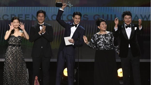 "En cualquier sociedad hay personas que tienen y que no tienen cosas materiales, y estos grupos coexisten entre sí", dijo a los periodistas la noche de los SAG el actor Kang-Ho Song.