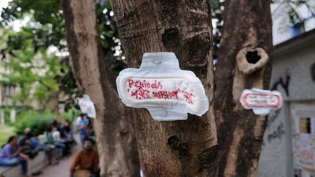 Para sorpresa de muchos, entre los manifestantes había un gran número de mujeres, una indicación de cuán profundamente arraigado está el estigma de la menstruación.