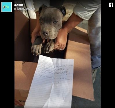 El 13 de febrero, el refugio de animales Xollin publicó en su cuenta de Facebook imágenes de un cachorro, un perro de raza pitbull, que había sido dejado en la entrada de esa organización en una caja de cartón junto a una carta. "Me llamo Andrés y tengo 12 años. Entre mi mami y yo decidimos dejarlo en manos de ustedes a escondidas de mi papá porque pensaba venderlo", se lee en la misiva. "Pero lo maltrata y lo patea. Una vez lo pateó tan duro que le lastimó su colita. Espero que puedan ayudarlo y lo cuiden. Le dejé un peluche para que no se olvide de mí", agregó Andrés.
