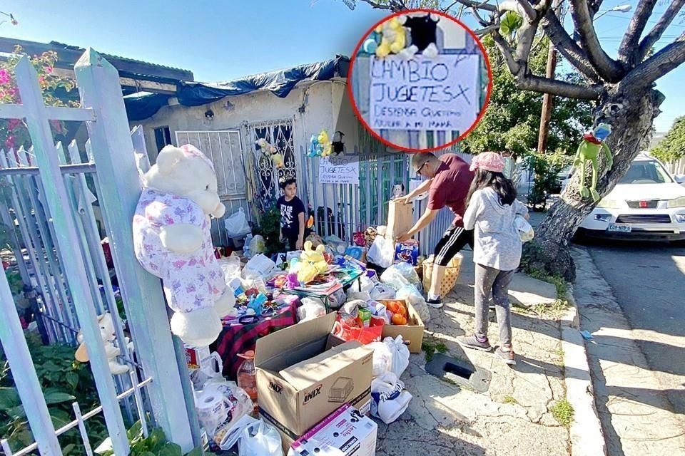 En cartel colocado fuera de la vivienda de la familia en un barrio popular de Tijuana se leía: "Cambio juguetes por despensa". Esto movilizó a que muchos vecinos sensibilizados se acercaran a llevarle alimentos a la familia.