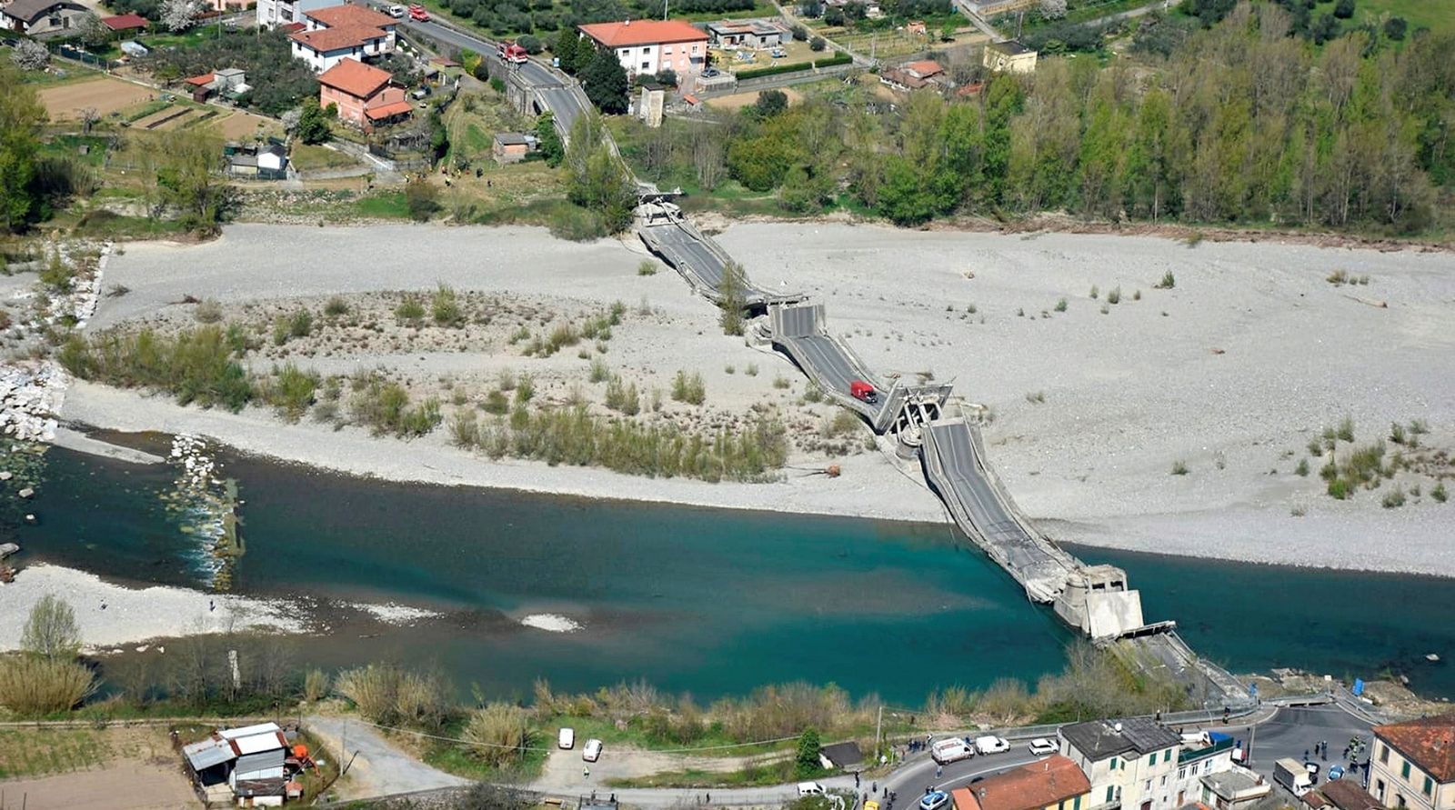 El puente de Albiano Magra, una localidad al norte de ese país, se derrumbó por completo esta mañana, en un momento en que era utilizado por dos autos.