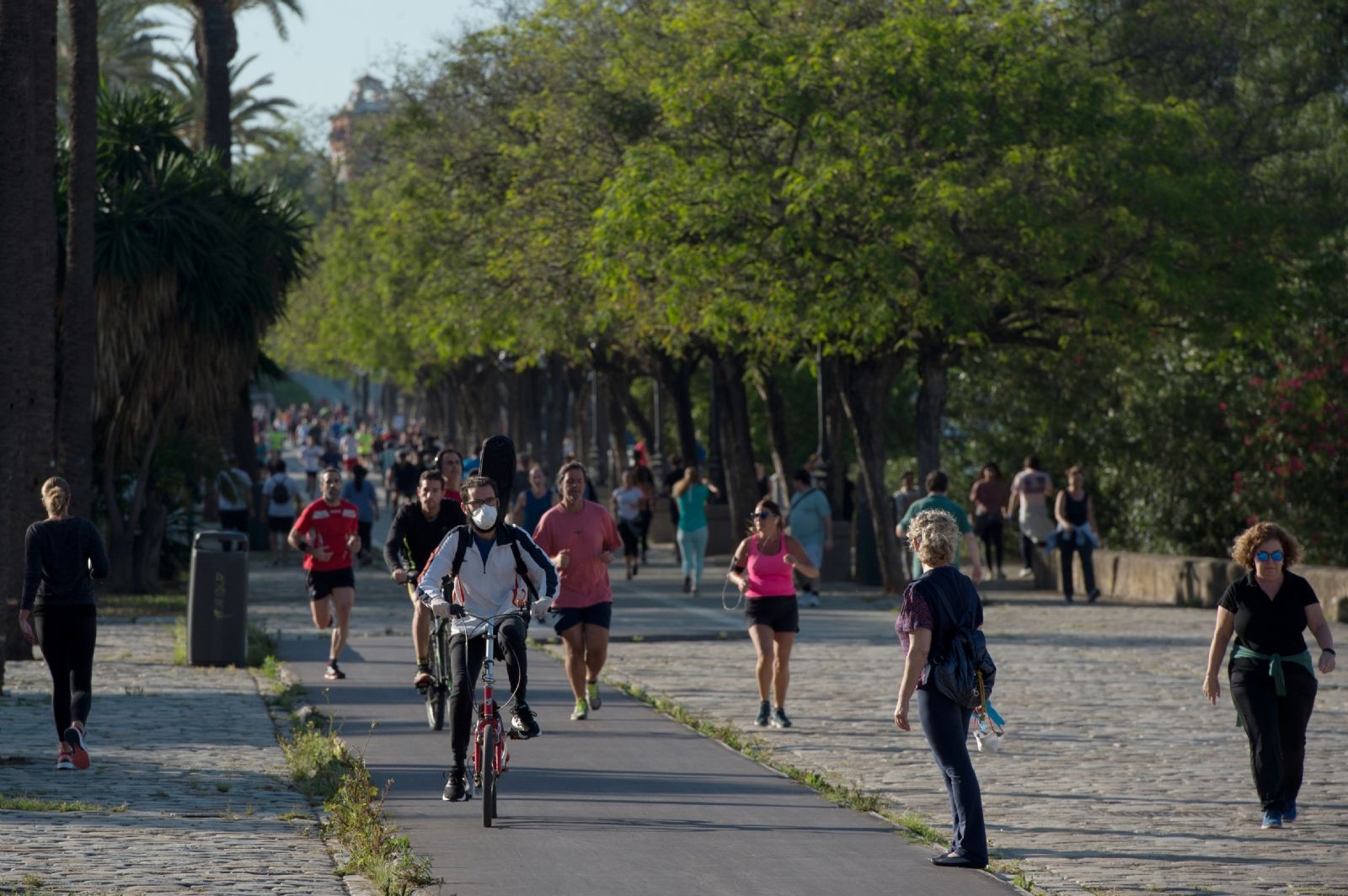 Equipados con sus ropas deportivas para correr o pedalear, o con vestimenta corriente para salir a pasear, y ayudados por el tiempo casi veraniego que hoy predomina en toda España, la actividad protagoniza ciudades y poblaciones que durante cerca de dos meses estuvieron semidesiertas.