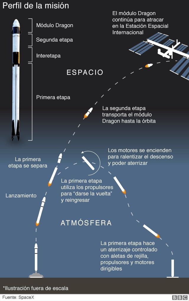 Es la primera vez en la historia del vuelo espacial humano que una empresa privada transporta a dos astronautas de la agencia espacial estadounidense.
