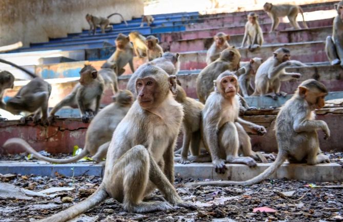 Al parecer los animales fueron expulsado de su hábitat natural y en un principio fueron confinados alrededor de un templo, a unos 150 kilómetros al norte de Bangkok. Pero con el paso del tiempo, los monos se fuero apropiando de edificios y obligaron incluso a muchos comercios a tener que cerrar sus puertas para protegerse.