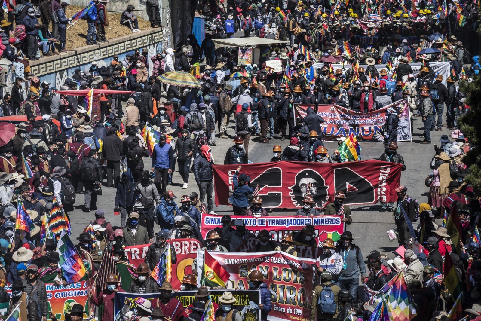 El Alto, la segunda mayor ciudad del país con cerca de un millón de habitantes, fue escenario de una marcha con pancartas de la COB, de organizaciones de mineros llegadas de otras partes del país y de distintos colectivos, con un ataúd de cartón y un muñeco representando a la presidenta interina de Bolivia, Jeanine Áñez.