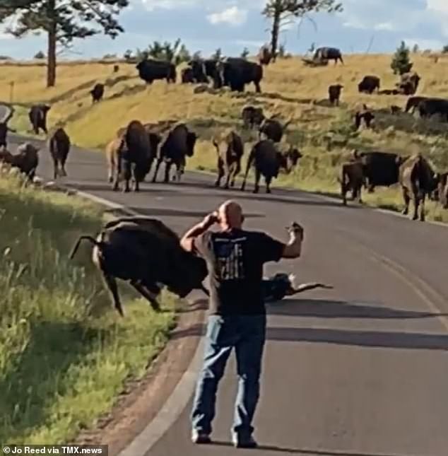 Una mujer de 54 años quedó inconsciente y sin pantalones luego de acercarse demasiado a una manada de búfalos en Dakota del Sur, Estados Unidos.