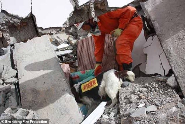 El hombre que se ve llorando es Wang Rujian, el entrenador que trabajó con el animalito durante toda su vida como perro de rescate.