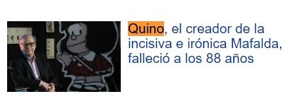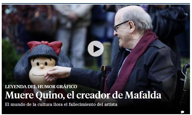 Los diarios españoles El País y La Vanguardia le dieron un espacio significativo en sus portadas a la triste noticia y resaltaron que Quino era uno de los dibujantes más célebres del idioma español.