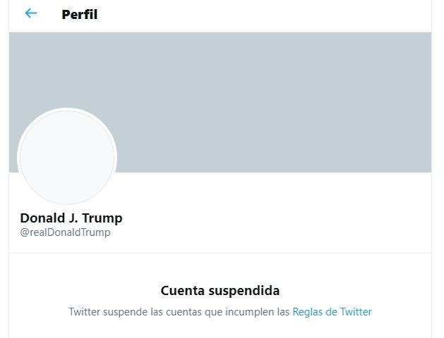 La red social Twitter ha anunciado este viernes la suspensión definitiva de la cuenta del presidente de Estados Unidos, Donald Trump, tras concluir que existía riesgo de "incitar a la violencia".