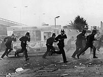 Los locales se armaron con proyectiles y obligaron a las autoridades a utilizar tapas de tachos de basura de metal como escudos. Joe Strummer, líder de The Clash y el bajista Paul Simonon se unieron. Mientras uno arrojaba piedras, el otro intentaba prender fuego un patrullero.