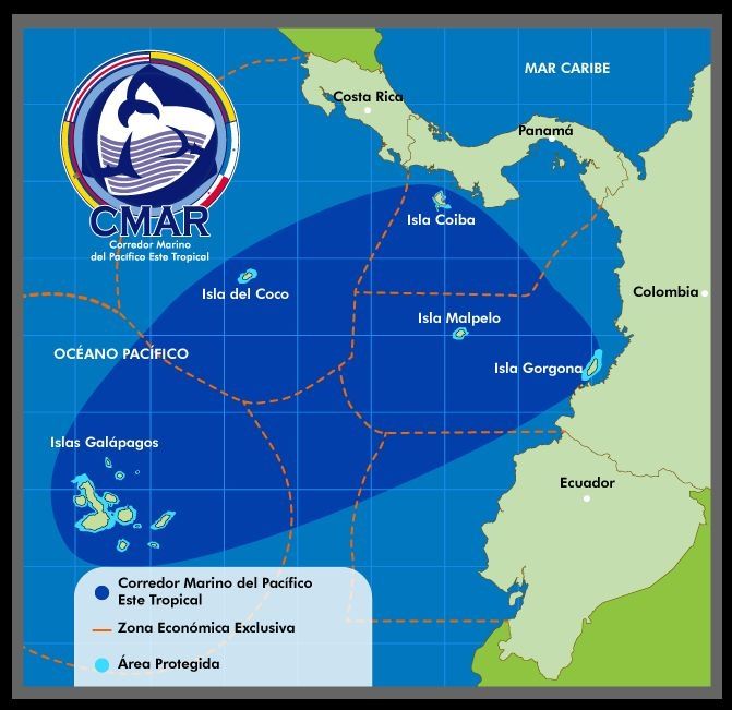 El llamado Corredor Marino del Pacífico Tropical Oriental (CMAR) tendrá una extensión de 500.000 kilómetros cuadrados y conectará a las islas Galápagos en Ecuador, la isla Malpelo en Colombia y las de Cocos y Coiba, situadas en aguas territoriales de Costa Rica y Panamá.