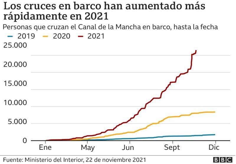 En una nota publicada por BBC Mundo el pasado septiembre, Peter Walsh, investigador del Observatorio de Migración de la Universidad de Oxford, dijo que la razón principal del alza de migrantes en el canal es la geopolítica.