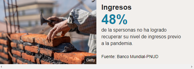 Y cerca de la mitad de los hogares no ha conseguido que sus ingresos totales regresen al nivel prepandémico, pese a las ayudas fiscales que se han entregado a las familias más vulnerables, según una investigación conjunta del Banco Mundial y el Programa de las Naciones Unidas para el Desarrollo (PNUD).