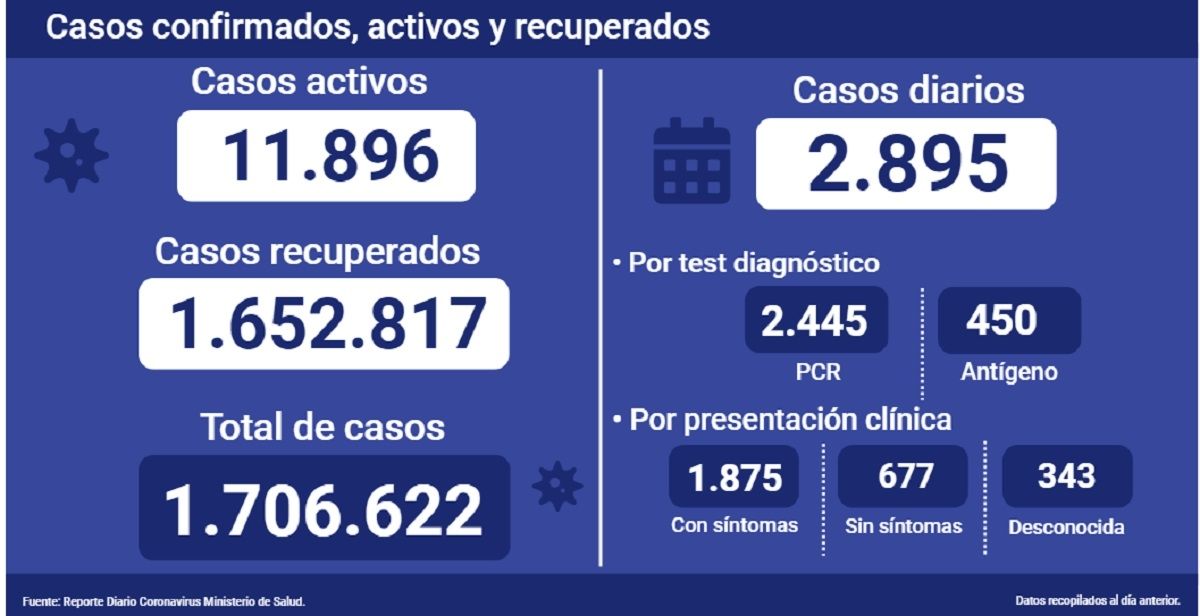Desde el Ministerio de Salud informaron que, a nivel nacional, se reportaron 2.895 nuevos casos. La mitad se dieron en la región Metropolitana, que sumó 1.479. Esta cifra es la más alta desde el 3 de julio para la región.