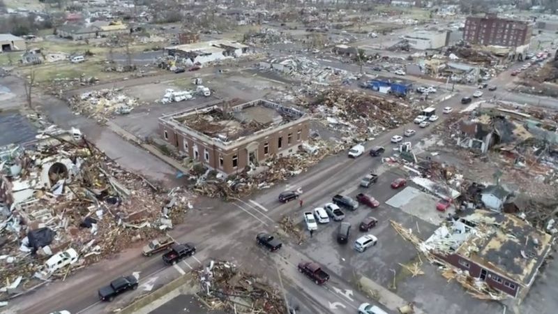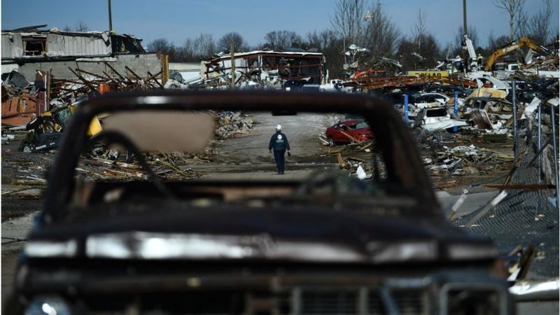 Una fábrica de velas en Mayfield, Kentucky, parece haberse llevado la peor parte en la tragedia que causó este viernes una histórica ola de más de 30 tornados en Estados Unidos, la peor en ese estado, según el presidente Joe Biden.