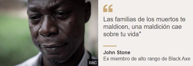 "Si me sentaras y me preguntaras: '¿Puedes identificar a Black Axe en el gobierno?', lo identificaré", dice. "La mayoría de los políticos, casi todo el mundo está involucrado".