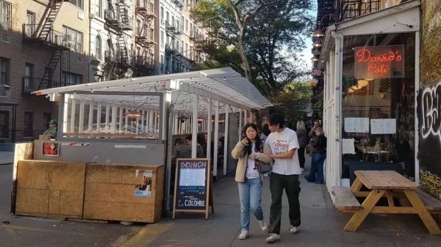 Cientos de calles en Nueva York están repletas -a ambos lados- de casetas construidas para ese uso, cambiando completamente el aspecto del paisaje urbano. Hay más de 11.000 nuevos sitios de comida al aire libre.