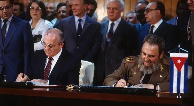 A la visita de Gorbochov a La Habana le siguió el rápido colapso del comunismo, república de soviets tras república de soviets.