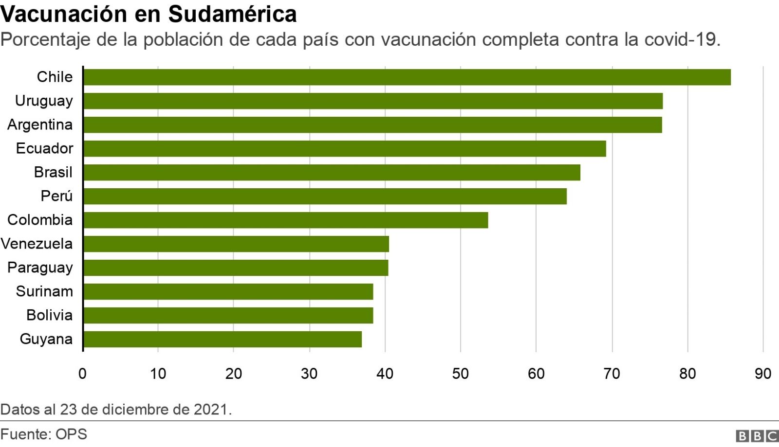 En peor condición llegan Guyana, Bolivia y Surinam, por debajo del 40%.