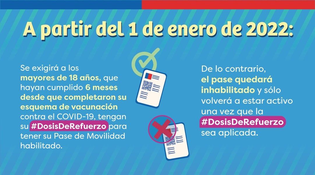 Las autoridades sanitarias de Chile anunciaron que más de 1,6 millones de personas que no se aplicaron la dosis de refuerzo se podrían quedar a partir del 1 de enero sin el pase de movilidad necesario.