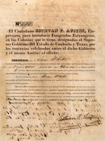 En enero de 1821, Moses obtuvo la autorización por parte de las autoridades españolas para crear esa colonia en Texas, pero murió poco después, por lo que esa tarea quedó en manos de su hijo Stephen F. Austin, a quien conocen en Estados Unidos como "el padre de Texas".